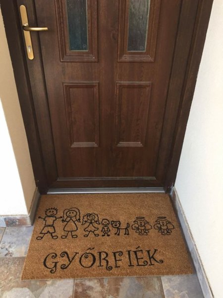 – Az, hogy vállalkozó legyek sosem volt célom, csak így alakult. 2016-ban költöztünk ki Dunaharasztira, és minden időmet a kislányom és az új otthonunk berendezése foglalata le. Így amikor a lábtörlőnket akartam lecserélni az ideiglenes vacakról, azzal kellett szembesülnöm, hogy mindenhol ugyanazt a minőséget ugyanazokkal a snassz, unalmas mintákkal vagy szöveggel lehet kapni. Így elhatároztam, hogy készítek magunknak egyet, ami tükrözi a stílusunkat és igazán mi vagyunk. Így kerültünk pálcikafiguraként a lábtörlőnkre. 😁